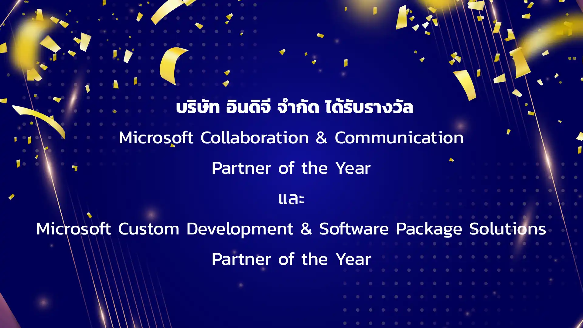 บริษัท อินดิจี จำกัด ได้รับรางวัล Microsoft Collaboration & Communication Partner of the Year และ รางวัล Microsoft Custom Development & Software Package Solutions Partner of the Year เนื่องจากมีผลงานโดดเด่นต่อเนื่องตลอดทั้งปี นับเป็นบริษัทหนึ่งที่มีศักยภาพสูงสุดทางด้านเทคโนโลยี Collaboration รวมทั้ง Custom Development ของไมโครซอฟท์ โดยในปีงบประมาณ 2010 ที่ผ่านมา บริษัทฯ สามารถทำสัญญาธุรกิจกับลูกค้ารายใหญ่หลายราย อาทิ ธนาคารกสิกรไทย บริษัท ปตท. จำกัด (มหาชน) บริษัท ไทยออยล์ จำกัด (มหาชน) และ ดุสิตธานี