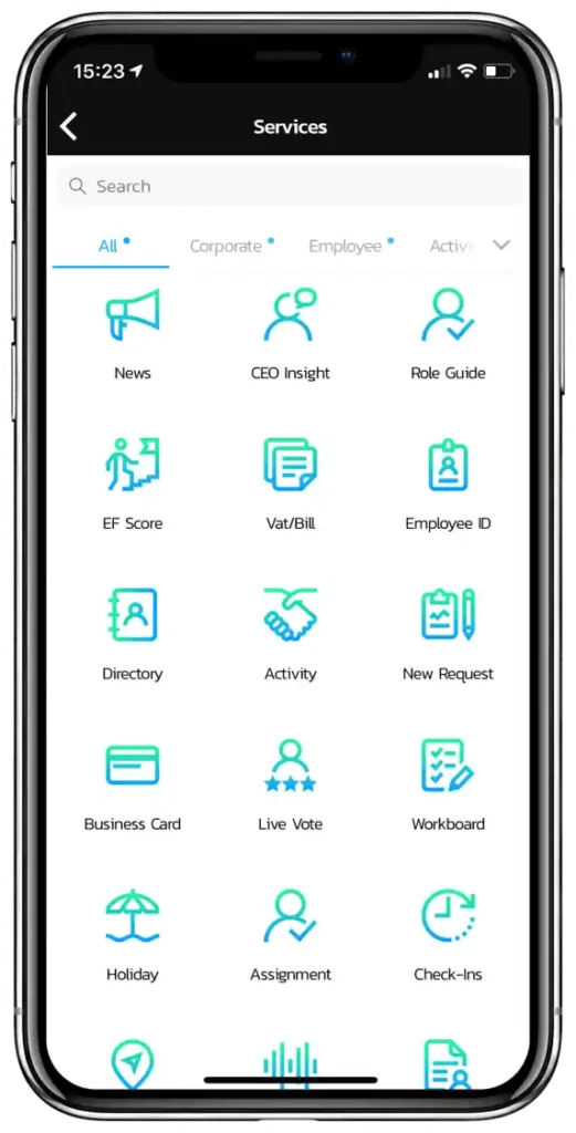 เครื่องมือรวมศูนย์การทำงานขององค์กรยุคใหม่ ที่รวมเอาความสามารถของคน และเทคโนโลยีเข้าไว้ด้วยกัน มาในรูปแบบของ Super App ที่ช่วยยกระดับการทำงานในองค์กรของคุณ ให้สามารถเข้าถึงข้อมูลข่าวสาร และเครื่องมือต่างๆได้อย่างรวดเร็ว และพร้อมใช้ทุกที่ทุกเวลา