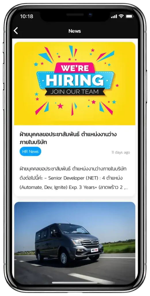 ประกาศข่าวสารภายในองค์กร โดยสามารถกำหนดงานกลุ่มเป้าหมายพนักงานได้