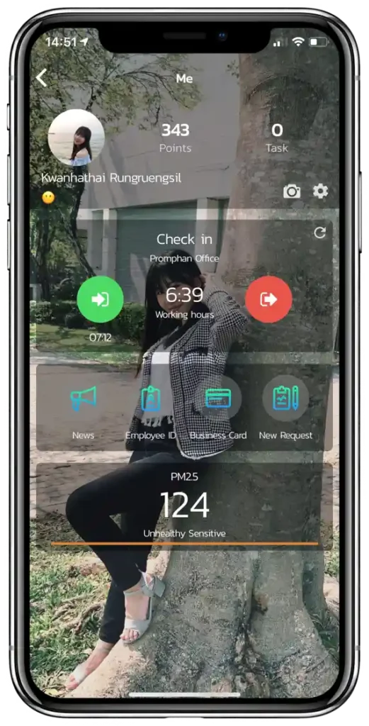 บันทึกเข้า-ออกงานได้ทุกที่ทุกเวลา เก็บประวัติการเข้างานในแต่ละวัน รวมถึงสามารถรับรู้การเข้า-ออกงานของเพื่อนพนักงาน
