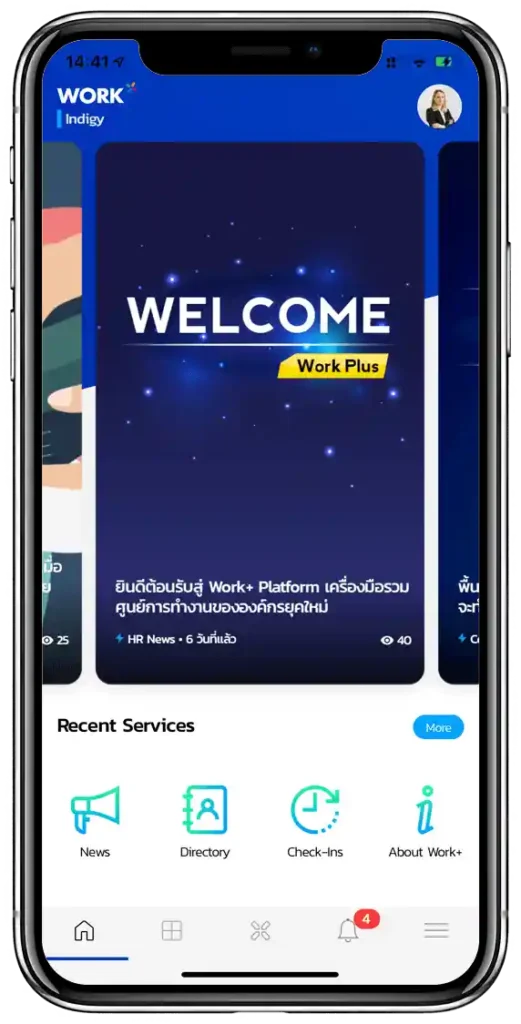 WORK+ มาพร้อมรูปแบบ UI/UX ที่ทันสมัย ปลอดภัย และพร้อมใช้งาน เหมาะสำหรับทุกองค์กรที่ต้องการสร้างวัฒนธรรมองค์กร ความริเริ่มสร้างสรรค์ พร้อมเชื่อมต่อทุกบริการองค์กรได้อย่างสมบูรณ์แบบ